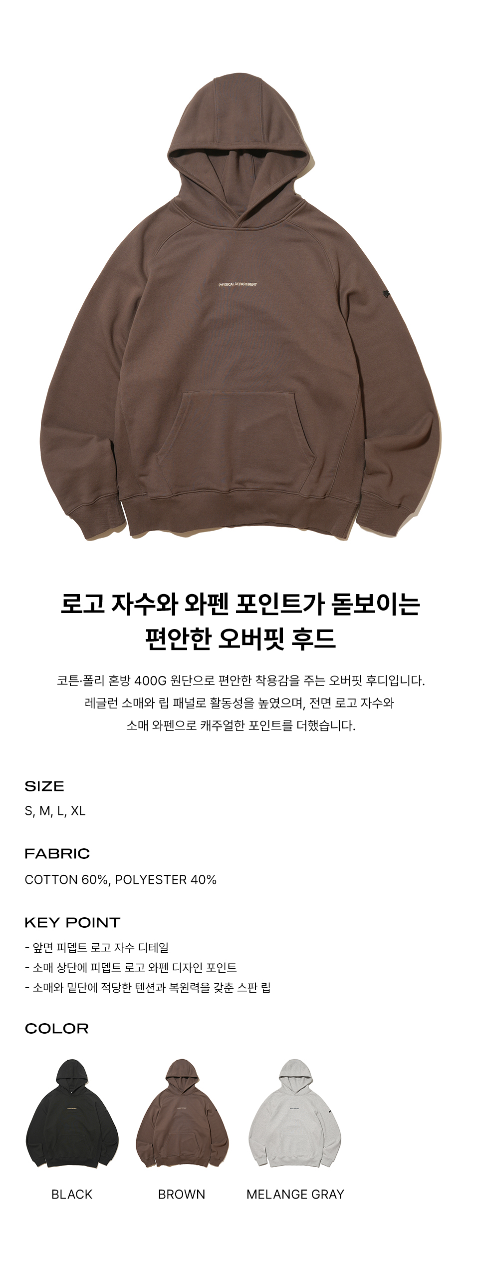 피지컬 디파트먼트 P-Dept 오리지널 로고 필드 후드 브라운