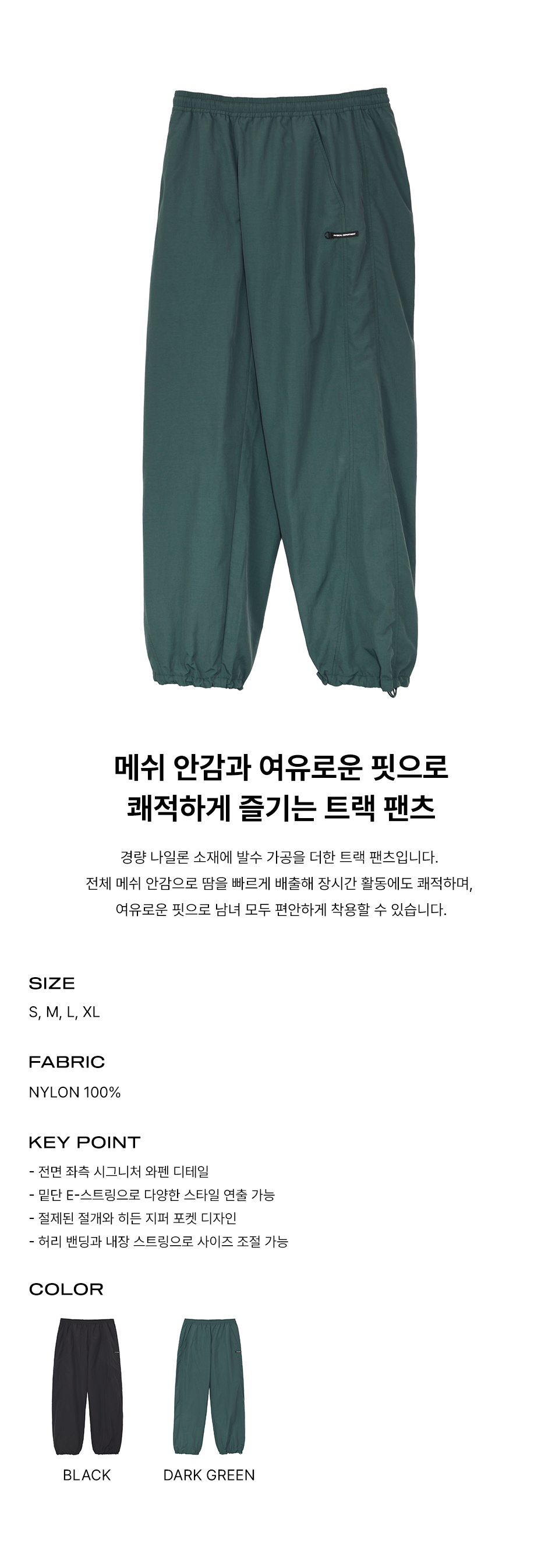 피지컬 디파트먼트 시그니처 와펜 나일론 트랙 팬츠 다크그린