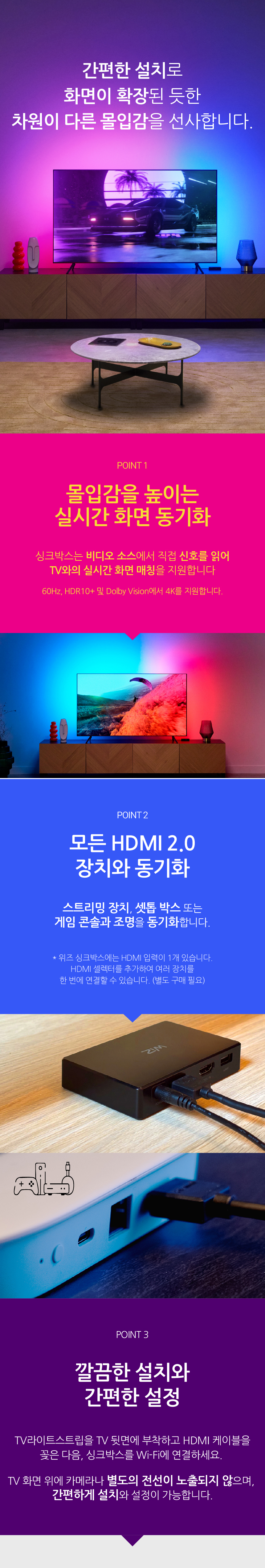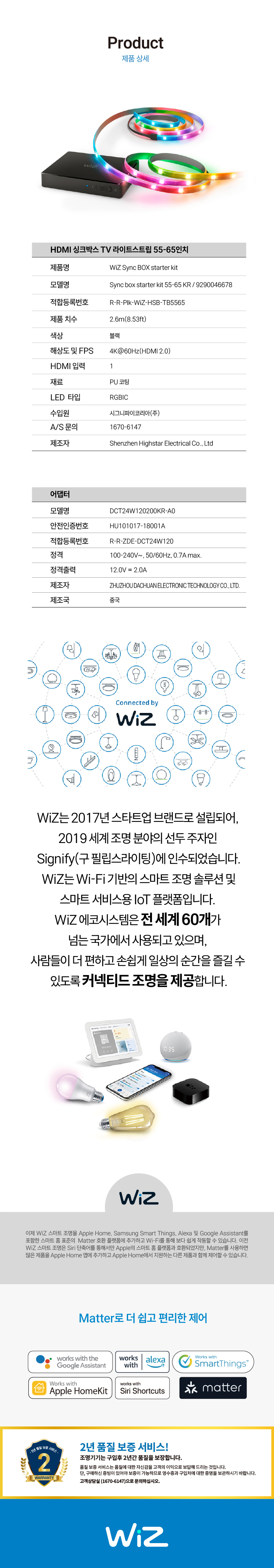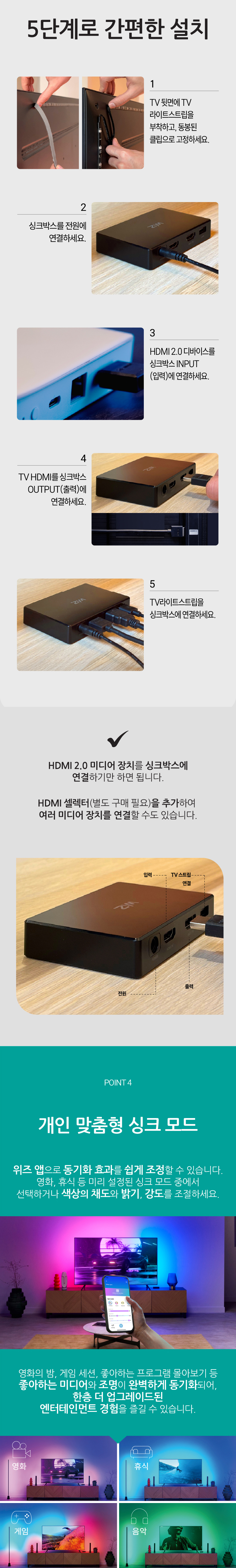 위즈 55-65 139cm TV용 라이트스트립+싱크박스 스타터킷 줄조명