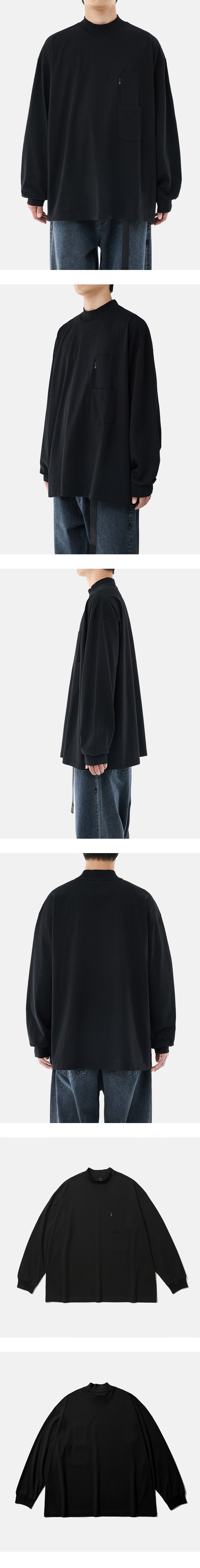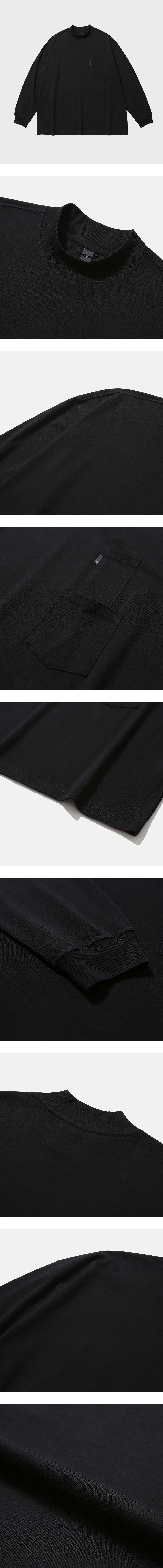 기능과 스타일을 갖춘 목넥 티셔츠 · 여유 있는 오버사이즈 실루엣. · 높은 높이의 골지가 있는 립 오프닝. · 묵직한 중량으로 탄탄하고 표면이 매끈한 면 원단 사용. · 수축 방지 가공된 원단으로 세탁 후에도 변형이 적음. · 전면부 두 가지 사이즈의 주머니를 겹쳐서 배치. · 주머니 부분 모이프 심볼 포인트 라벨 부착. · 편안한 착용감을 위해 손목 립 부분의 시접을 갈라서 처리.