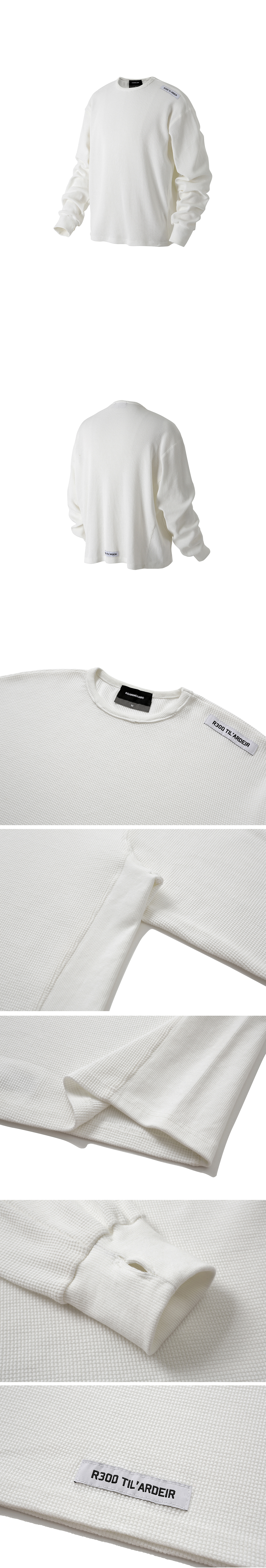 Fabric : 100% Cotton - 크롭 핏 - 와플 패브릭 - 라벨 포인트 - 핑거 홀 디테일 - 소매 및 옆선 시보리 디테일 - 전체 가이루바 스티치 디테일 • 제조국 : 대한민국 • 세탁 방법 : 찬물 세탁 권장, 건조기 사용 금지 Size Spec (CM) M : 어깨 52, 가슴 63, 총장 66, 소매 66 L : 어깨 54, 가슴 66, 총장 67, 소매 67