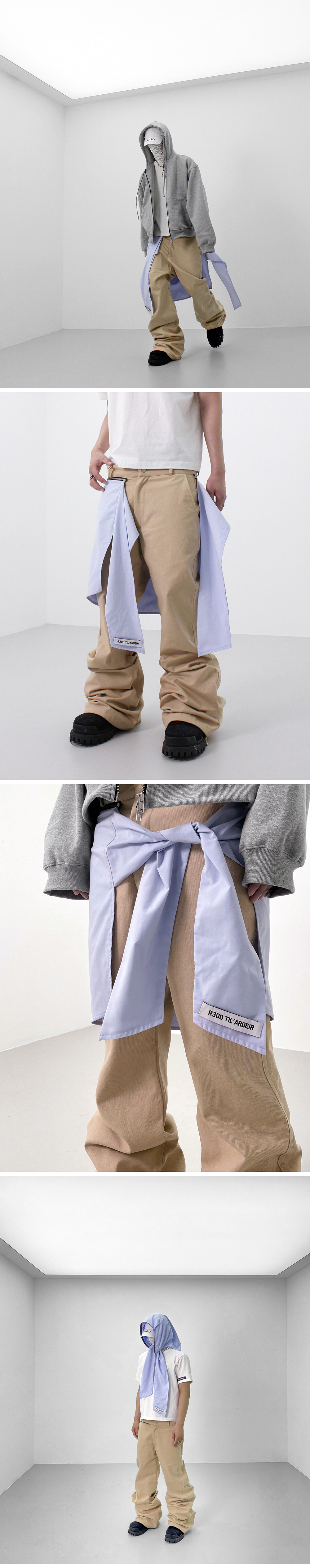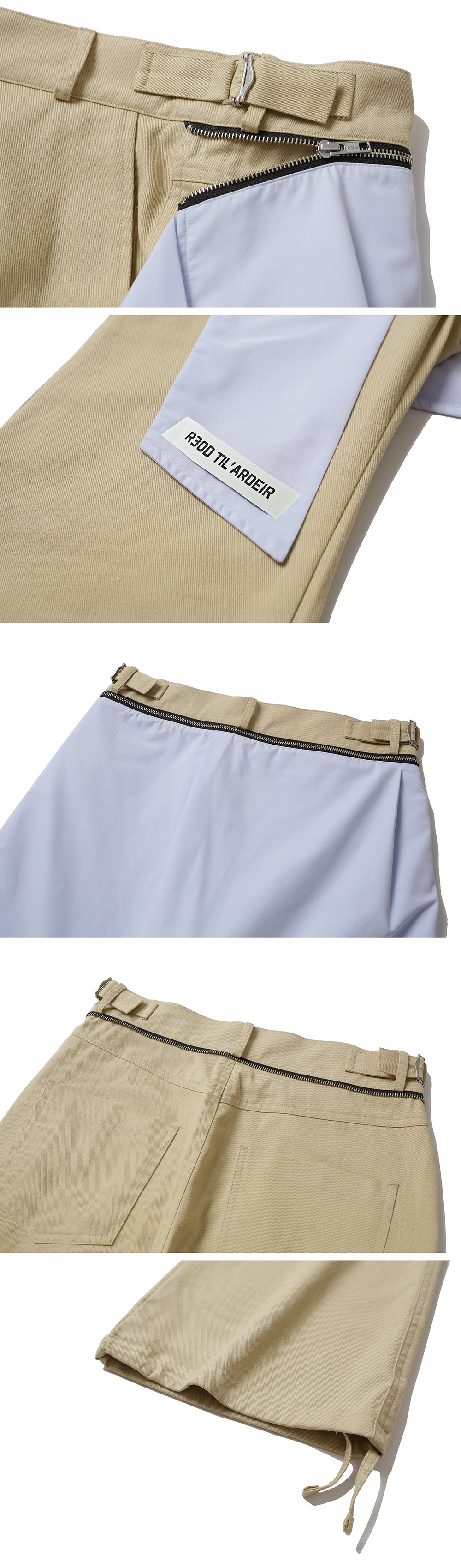 Fabric : 100% Cotton - 플레어 핏 - 10's 고밀도 트윌 - 지퍼 탈부착 셔츠 패널 - 허리 사이즈 조절 비조 - 밑단 조절 스트링 - 시그니처 켄톤 - 라벨 포인트 - Zipper YKK 社 • 제조국 : 대한민국 • 세탁 방법 : 찬물 세탁 권장, 건조기 사용 금지 Size Spec (CM) M : 허리 42, 허벅지 33, 밑위 34, 밑단 31, 엉덩이 53, 총장 115 L : 허리 45, 허벅지 35, 밑위 35, 밑단 33, 엉덩이 55, 총장 117 • 새깅 연출을 위해 허리를 여유 있게 제작했으며, 허리 조절 스트랩으로 2~3인치 사이즈 조절이 가능합니다.