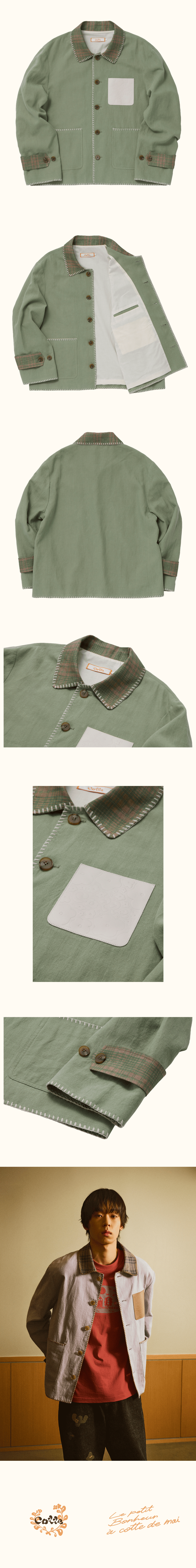 Fabric - 겉감: Linen 85% Cotton 15% - 안감: Cotton 100% - 배색감: Linen 100% - 레더패치: Real Cow Leather 100% / Made In Italy Detail - 린넨 코튼 혼방 원단으로 쾌적한 착용감. - 천연 효소를 사용한 바이오 워싱 가공으로 은은한 컬러감과 부드러운 촉감. - 이태리 MASTROTTO社의 크롬태닝 소가죽 레더패치. - Merrow 스티치 디테일. - 카라, 소매스트랩 체크린넨 배색. *제품 색상은 제품 컷과 가장 유사합니다.