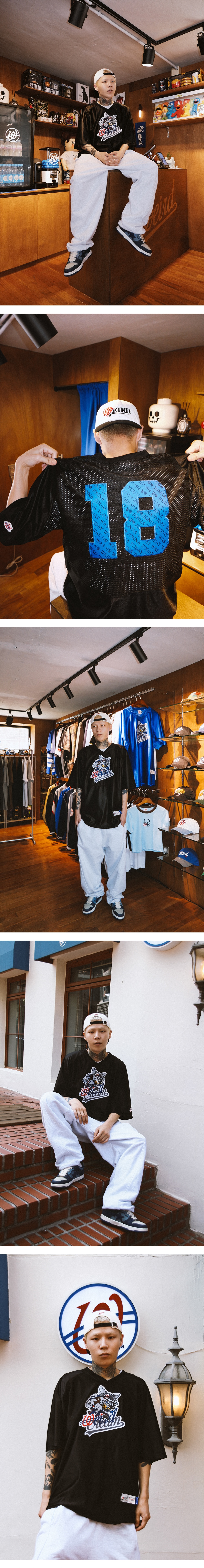 2013년부터 서브컬쳐 안에서 활동해 온 베이스크림과 자신만의 방식으로 어센틱을 수년간 재해석해 온 위얼드월드. 두 브랜드가 협업하여 제작한 풋볼저지를 공개합니다. 캐릭터 그래픽은 SYNO가 참여했으며, 저지 뒷면의 숫자 18 안에는 두 브랜드가 전달하고자 하는 정신과 메시지를 담았습니다.