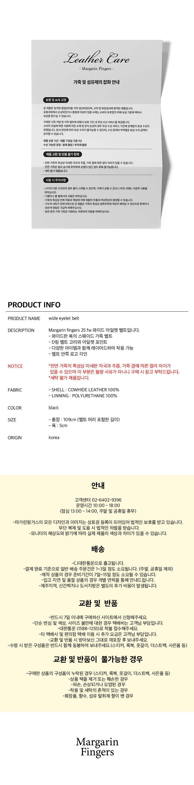 마가린핑거스 와이드 아일렛 벨트 블랙