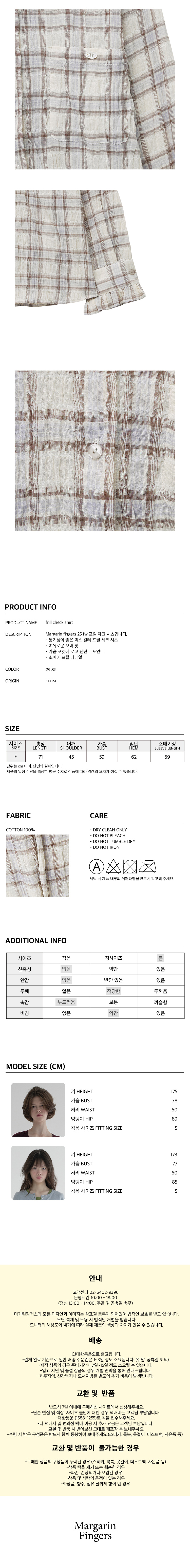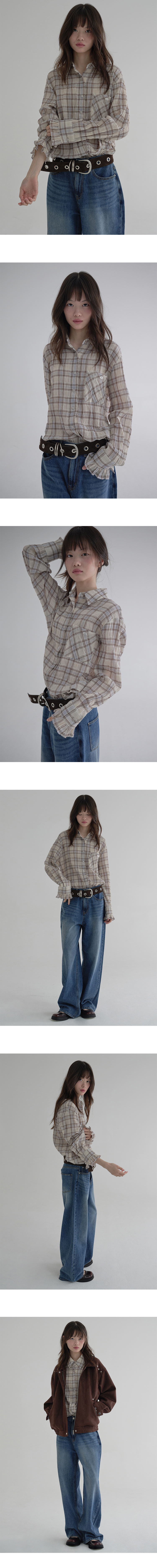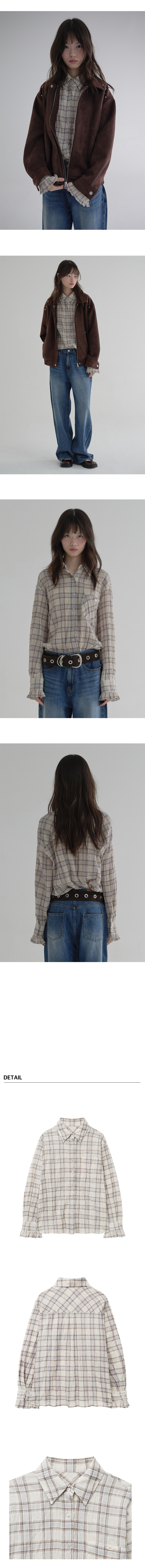 마가린핑거스 프릴 체크 셔츠 베이지