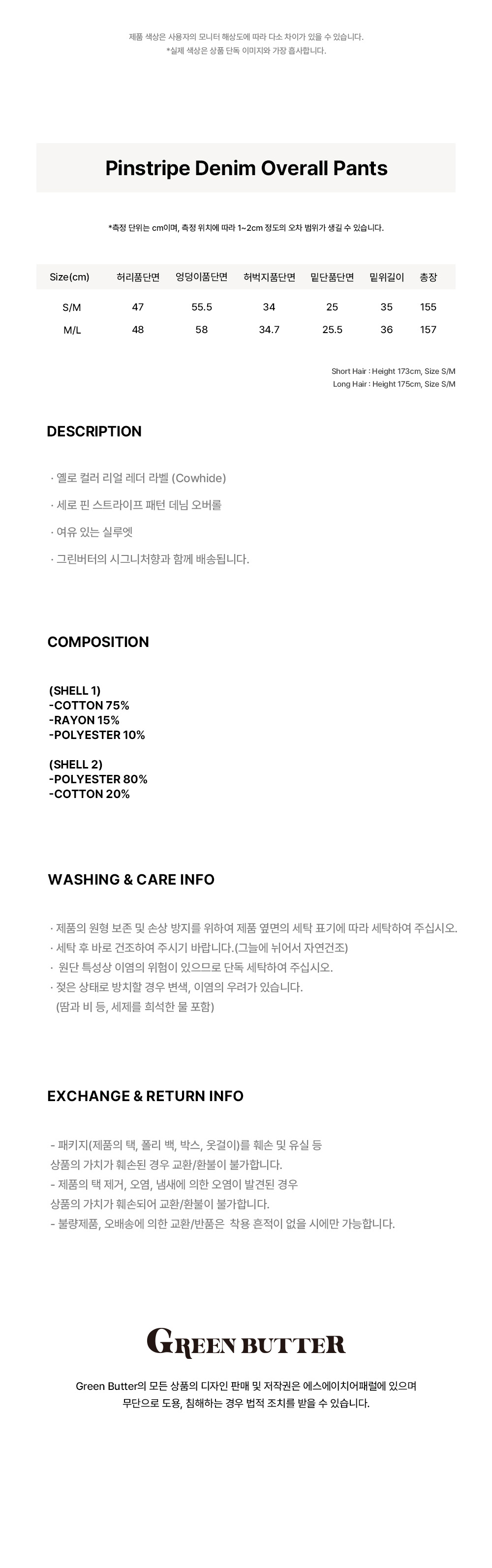 그린버터 핀스트라이프 데님 오버롤 팬츠 딥 블루