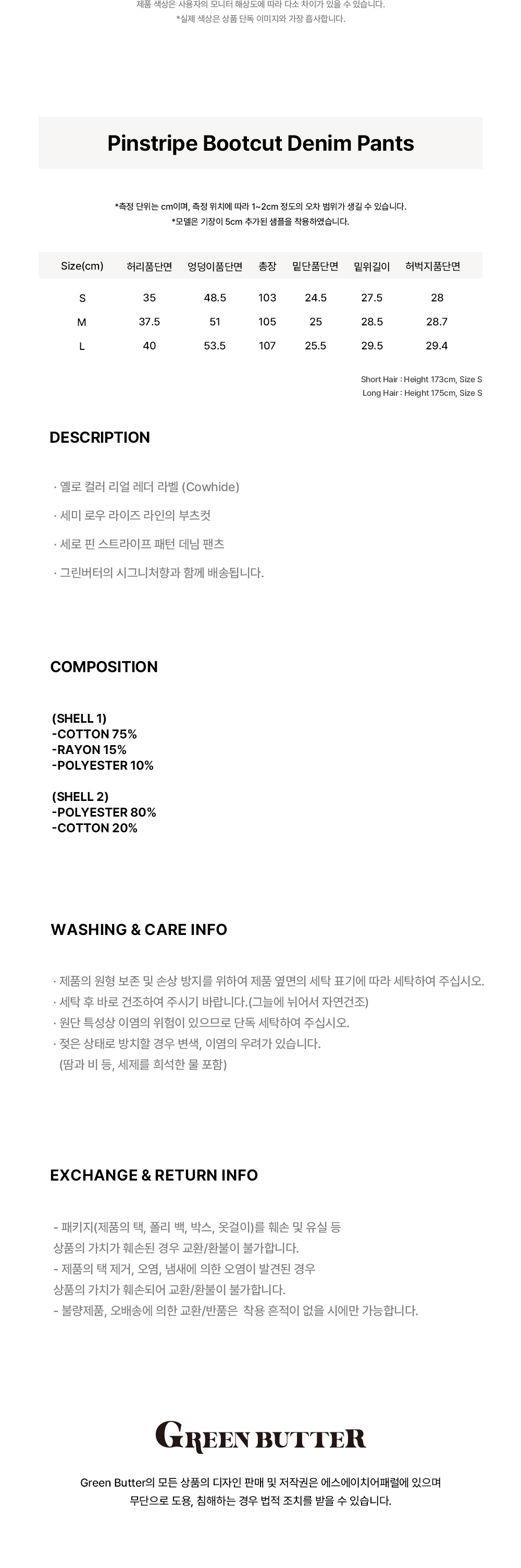그린버터 핀스트라이프 부츠컷 데님 팬츠 딥 블루