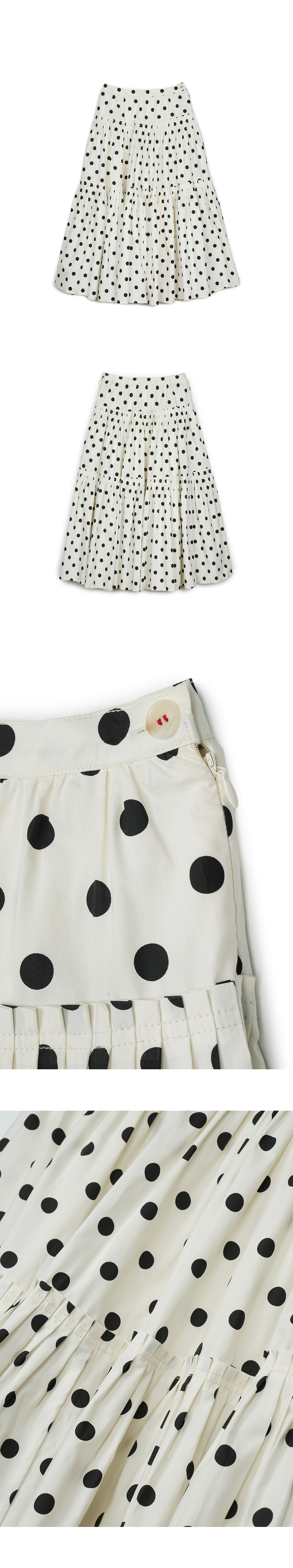 그린버터 폴카 도트 플리츠 스커트 아이보리