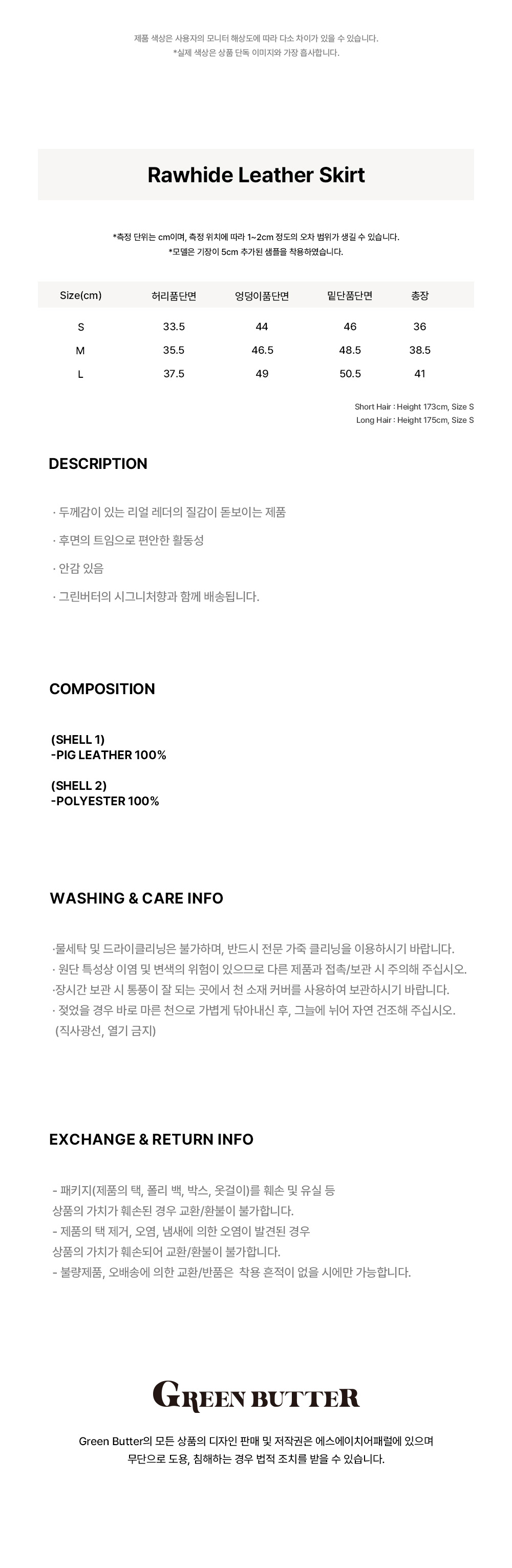 그린버터 로우하이드 레더 스커트 라이트블루
