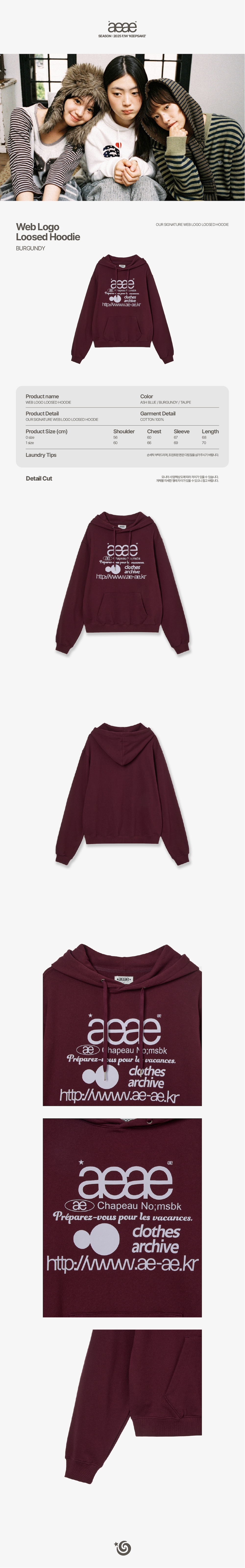 에이이에이이 웹 로고 루즈드 후디 버건디