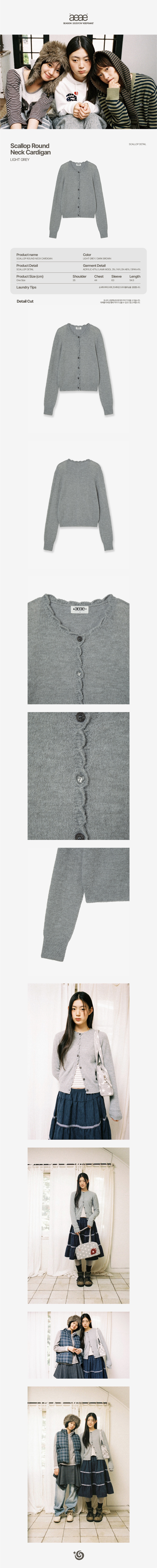 에이이에이이 스캘럽 라운드 넥 가디건 라이트 그레이
