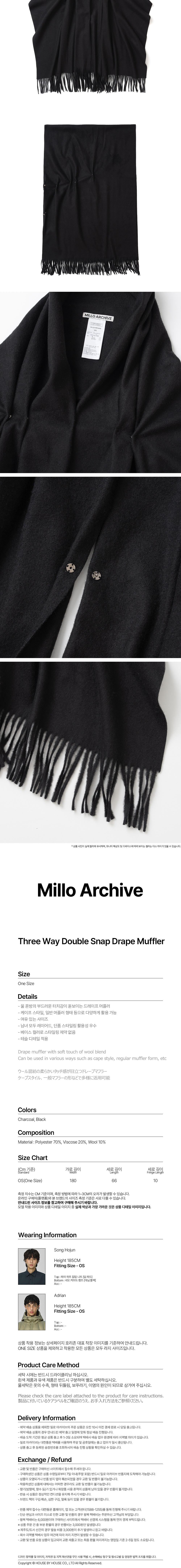 밀로 아카이브 쓰리 웨이 더블 스냅 드레이프 머플러 블랙