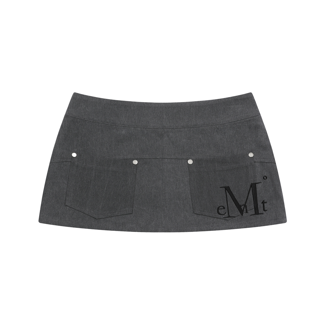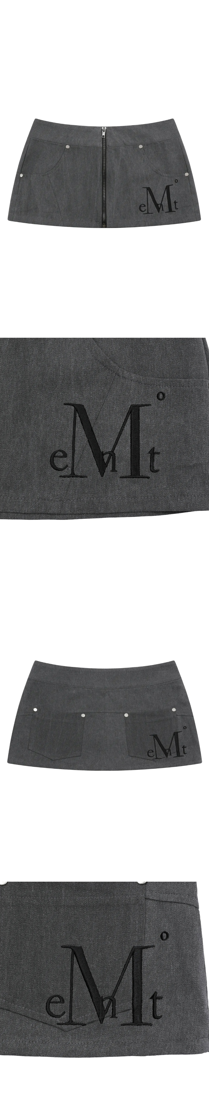 무센트 크립트 피그먼트 지퍼 포인트 리벳 미니 스커트 차콜