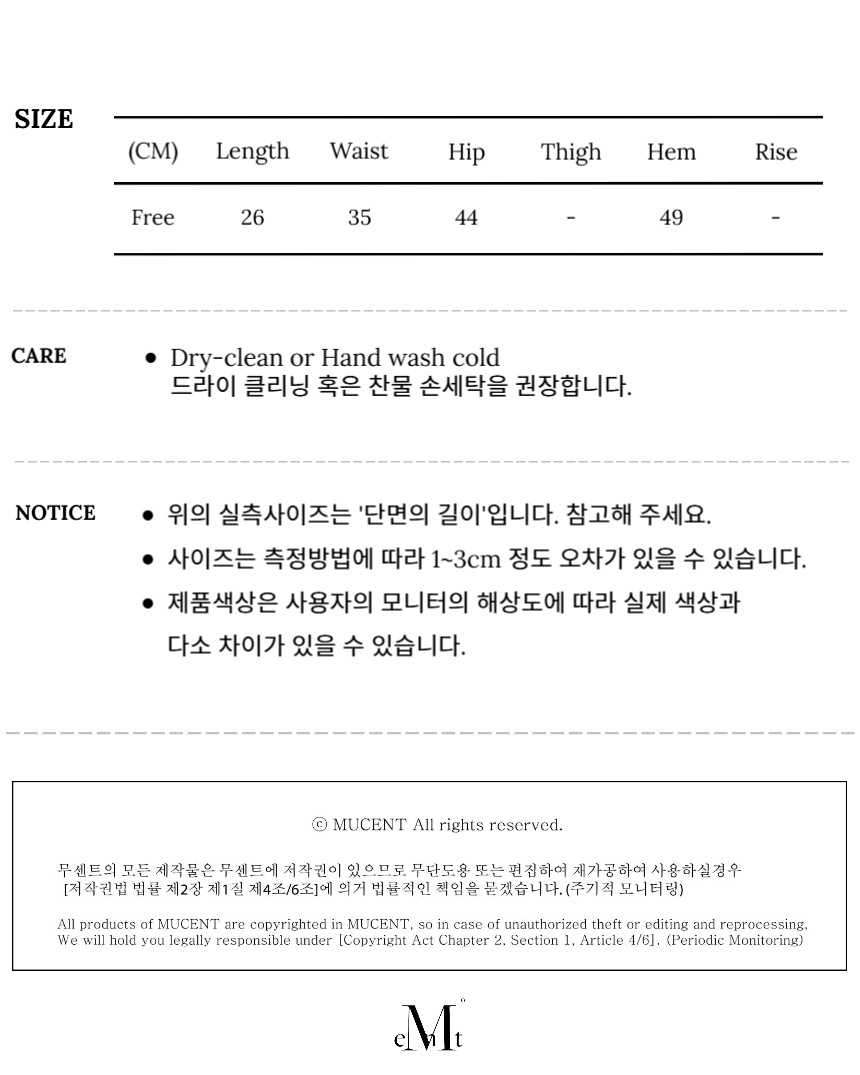 ┃Detail • 전면부, 후면부 하단에 무센트 시그니처 로고 자수 • 프론트 지퍼 디테일로 유니크한 디자인 • 포켓 끝단에 무센트 로고 리벳 디테일로 은은한 포인트 • 포켓 아래 사선 절개 디테일로 입체적인 디자인 • 슬림한 아웃핏의 A 라인 스커트 • 피그먼트 공법으로 빈티지하면서 차분한 색감 ┃Material : Cotton 100% ┃Care : Dry cleaning - 무센트는 말기의 행성인 이 지구에서 지속 가능한 옷들을 고민합니다. 우리는 신념을 소비하는 미닝아웃을 지지합니다.