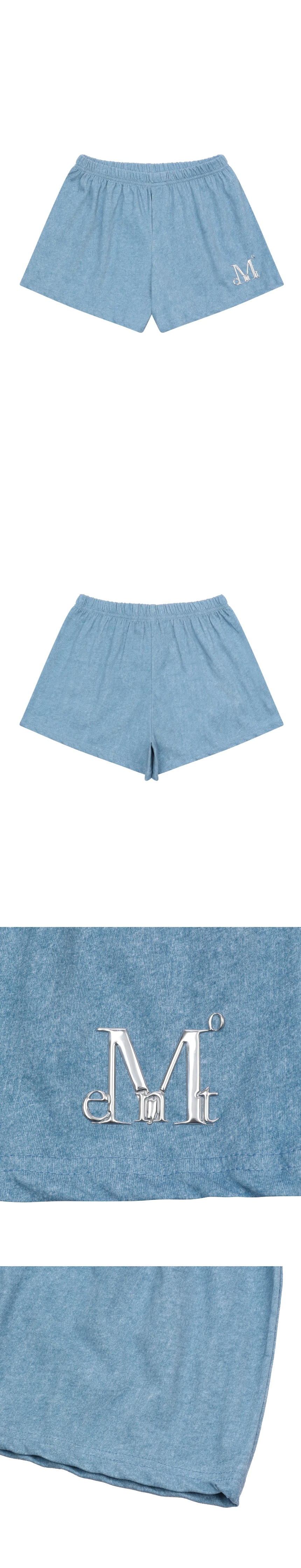 무센트 슬랩 피그먼트 워싱 메탈로고 셋업 쇼츠 피그먼트 블루