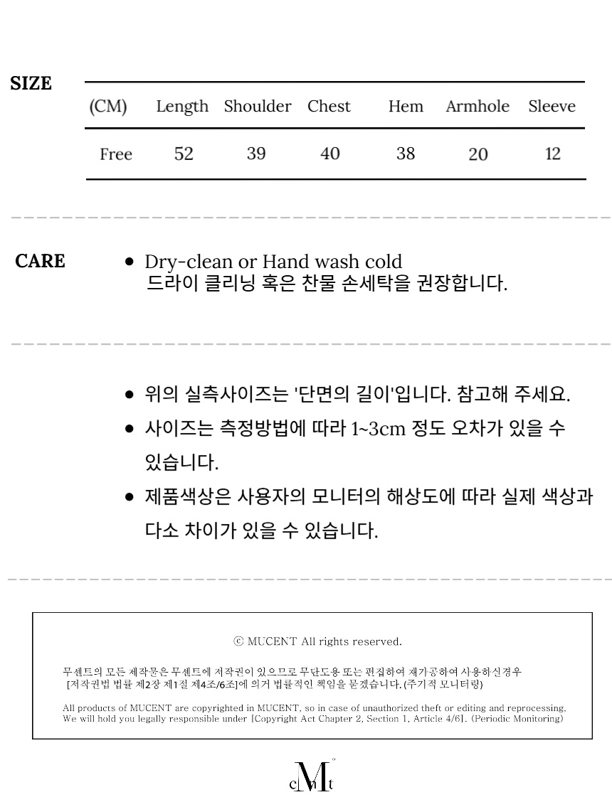 측정 방법에 따라 사이즈에 일부 오차가 있을 수 있습니다.