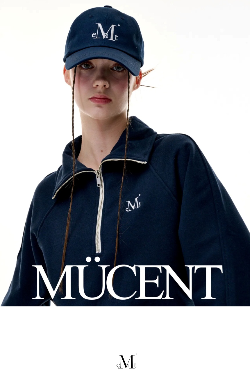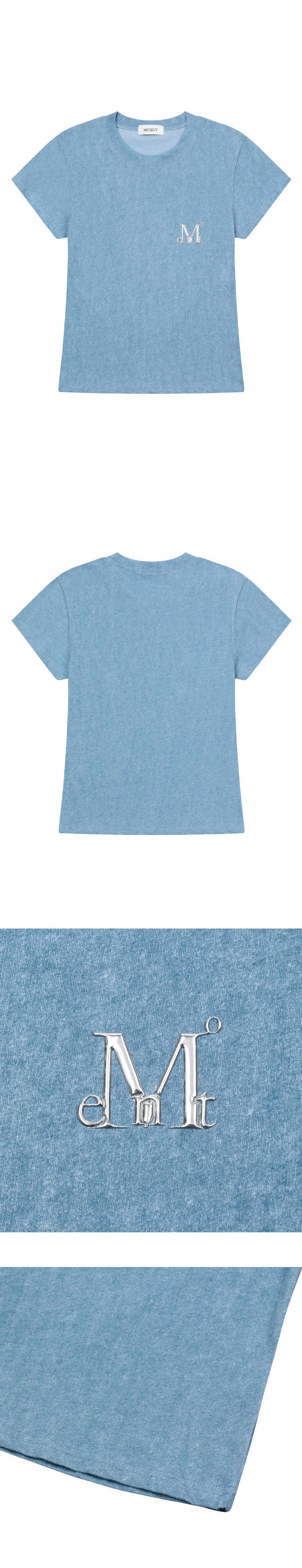 MUCENT Slap Pigment Washing Metal Logo Set Up Half T Pigment Blue
