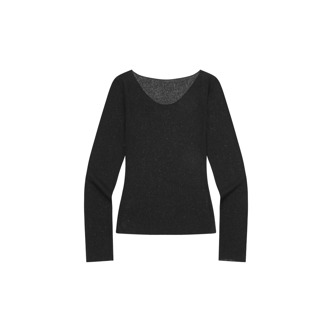 무센트 뤼에르 시스루 브이넥 니트 블랙