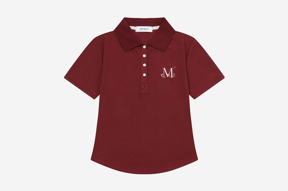무센트 뮤라 슬림핏 굴림 카라 반팔 티 버건디