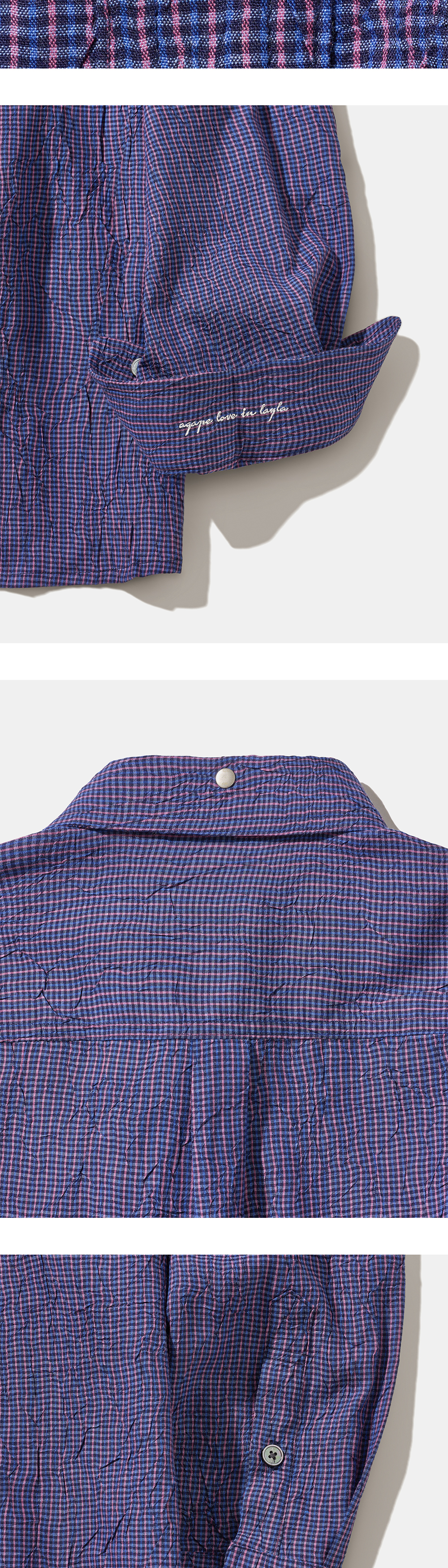 - Fit : Big Over-fit *S37-2 핏과 동일합니다. - Material : Poly 65% Cotton 35% - Season : Four seasons - Washing method : Separate cold wash, Do not Bleach, Do not tumble dry, Iron with low heat coverd by cloth - Made in KOREA - 깊은 네이비와 오묘한 퍼플 위로 핑크빛 라인이 은은하게 스며든 Aurora Glow 체크 원단 - 마치 밤하늘의 오로라처럼 차분하면서도 은은한 빛감을 품어, 고급스럽고 신비로운 무드를 연출 - 카라 뒤에 스냅 단추를 달아 실용성과 디자인 포인트를 동시에 구현 - 프론트 빅 원포켓과 바텍 스티치 디테일로 기능성과 봉제 완성도 강화 - 빅 오버핏으로 편안하면서도 스타일리시한 실루엣 - 레이라 시그니처 agape love in layla 커프스 히든 자수 - 고급스러운 Layla 0613 각인 천연 자개 단추