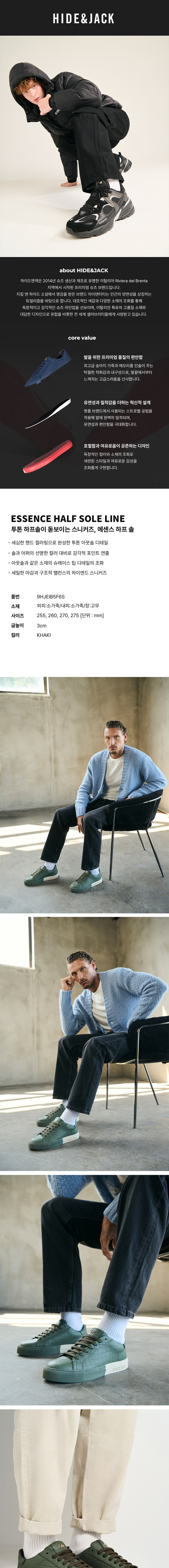 하이드앤잭 에센스 하프 솔 스니커즈-카키
