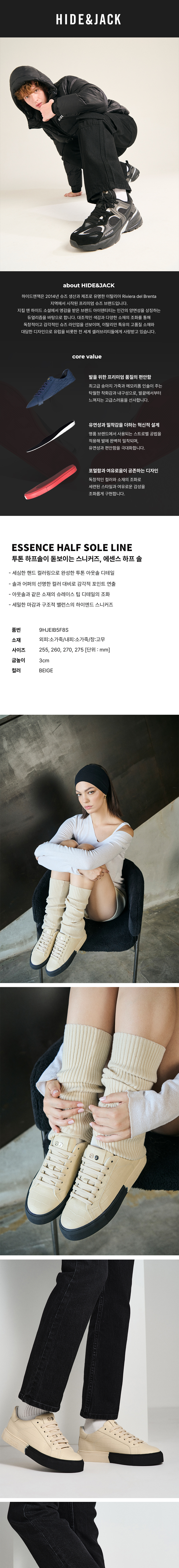 하이드앤잭 에센스 하프 솔 스니커즈-베이지