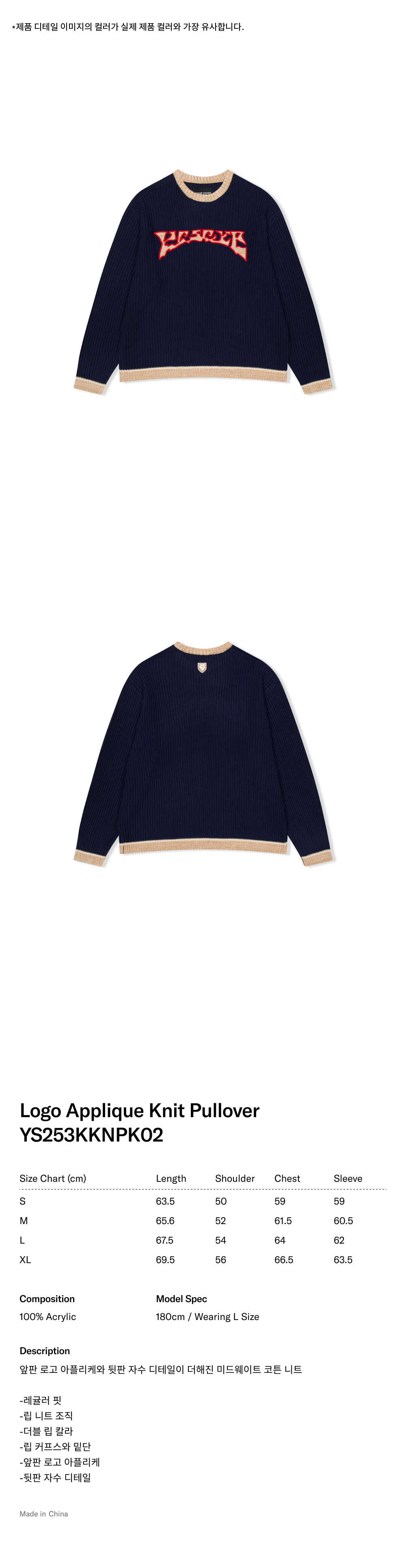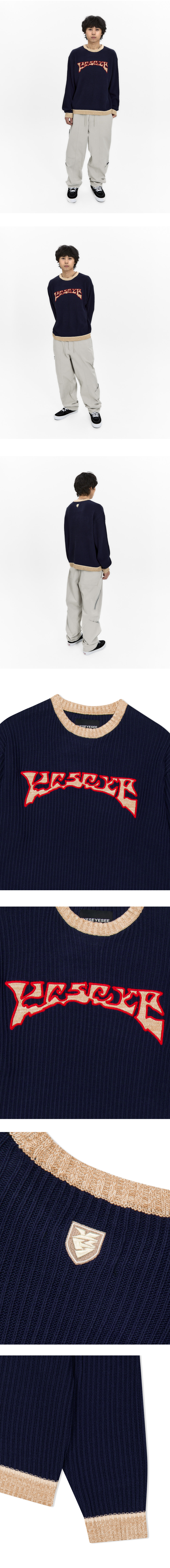 예스아이씨 로고 아플리케 니트 풀오버 네이비