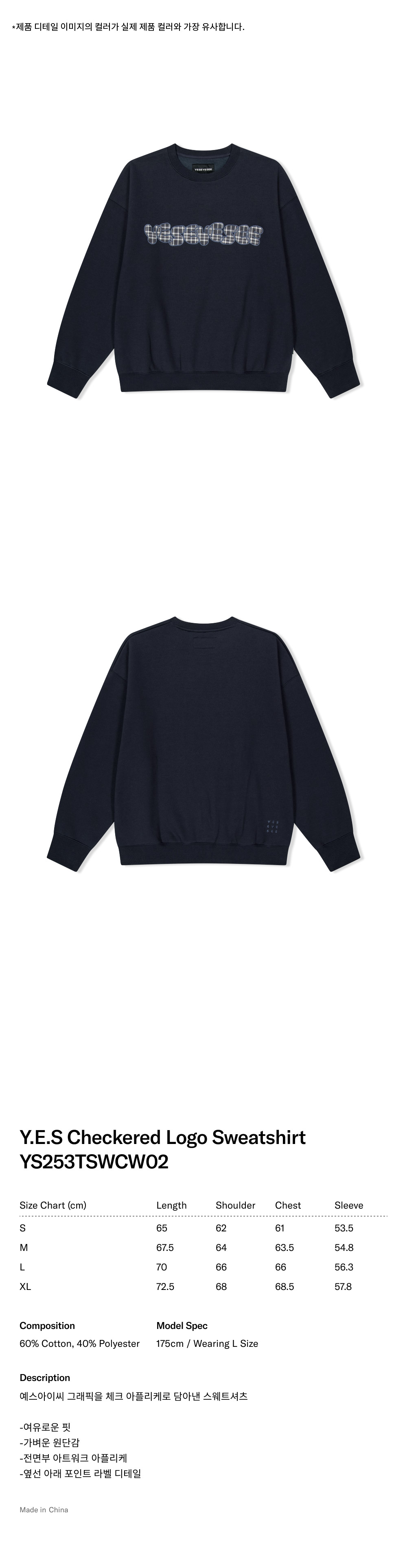 예스아이씨 예스 체커드 로고 스웨트셔츠 차콜