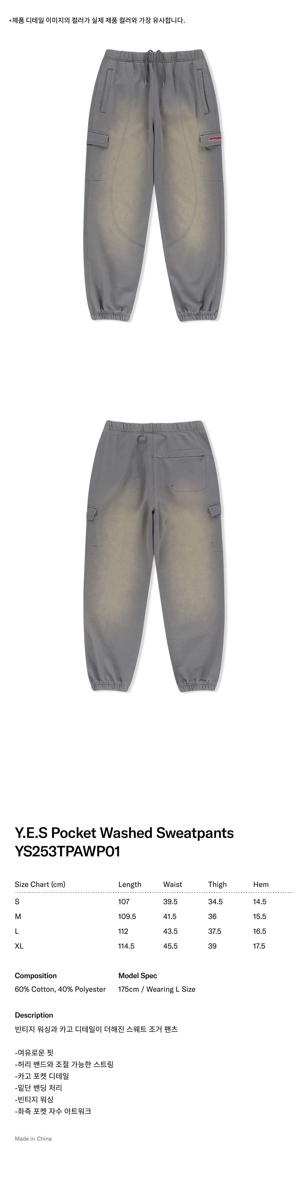 예스아이씨 예스 포켓 워시드 스웨트팬츠 다크 그레이