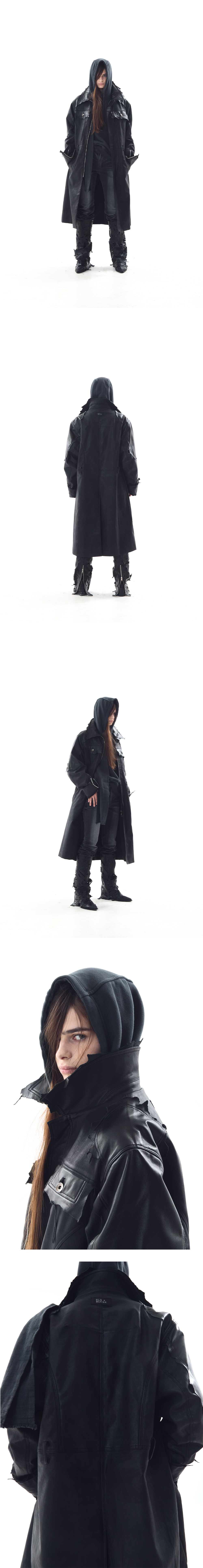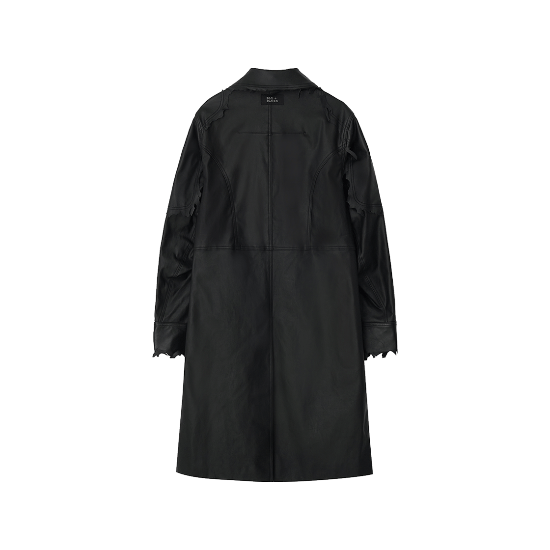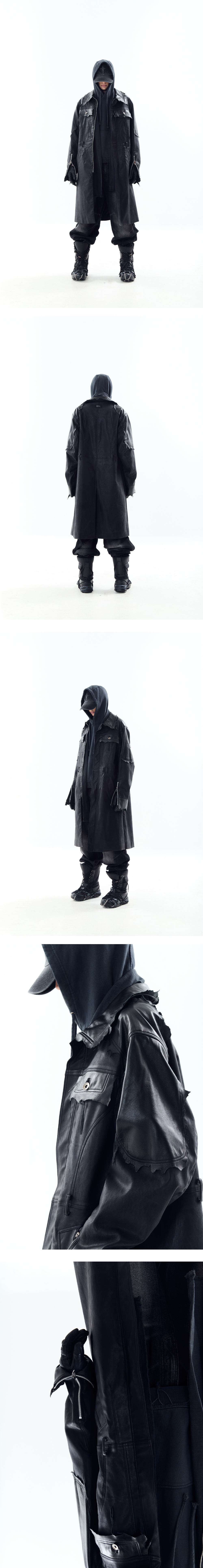 리얼 양가죽을 사용한 핸드메이드 롱 트러커 코트로, 코팅 처리된 데님 원단과 소매 메탈 지퍼(니켈 지퍼), 시그니처 슬라이더 디테일이 더해져 편안하면서도 고급스러운 무드를 연출합니다.