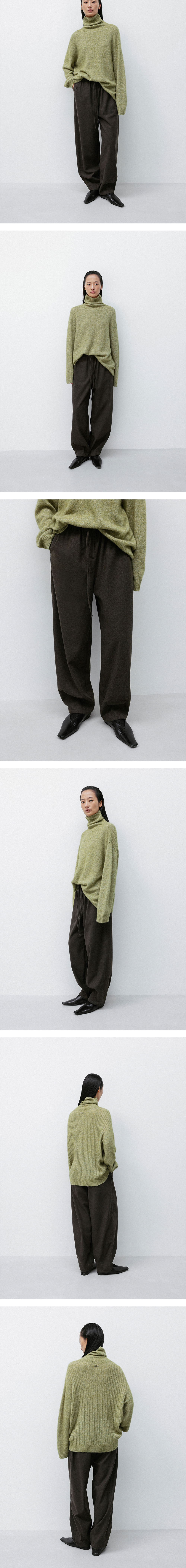 우마뭉 울 플란넬 오벌 실루엣 팬츠 다크올리브