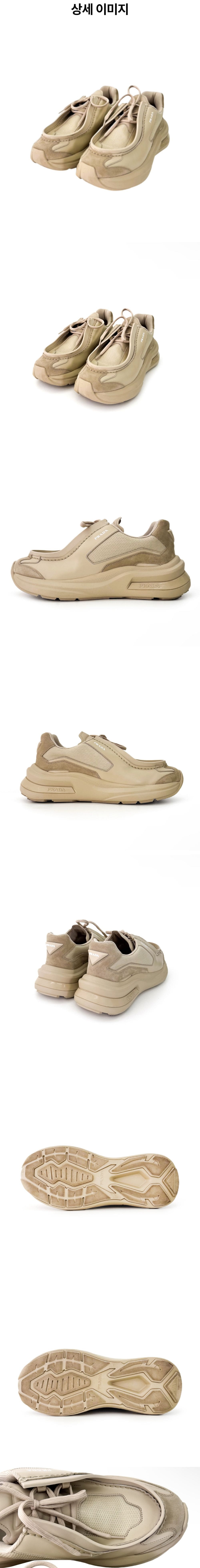 프라다 브러시드 청키 레더 바이크 스웨이드 스니커즈 베이지