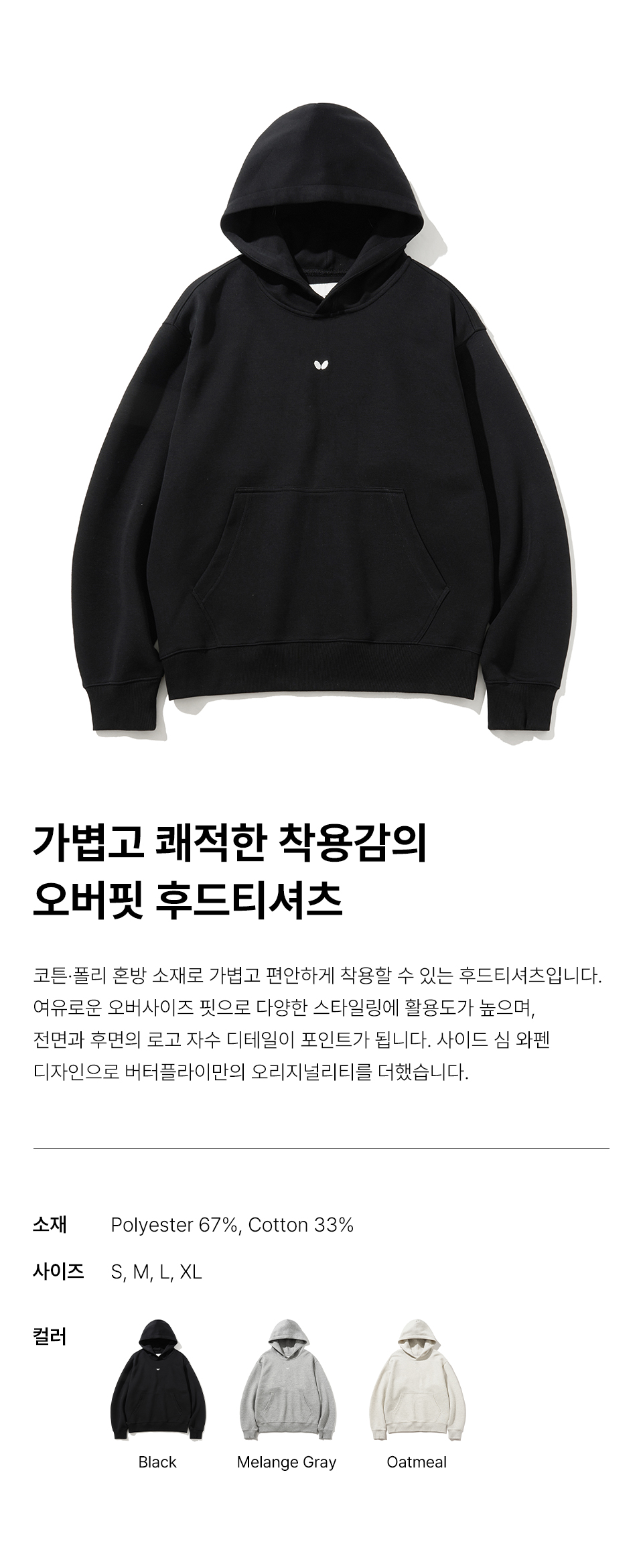 버터플라이 오리지널 자수 로고 후드티 블랙