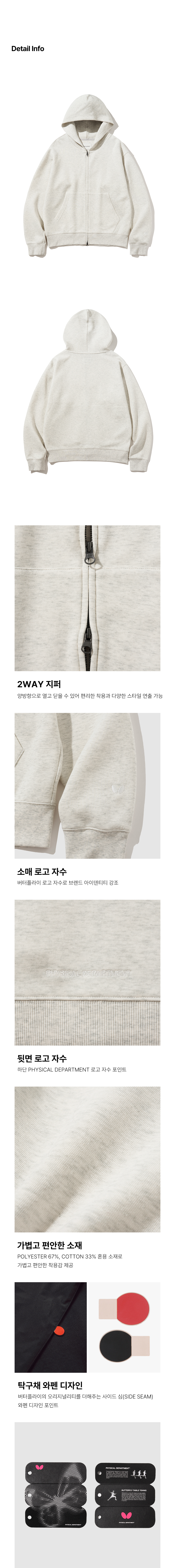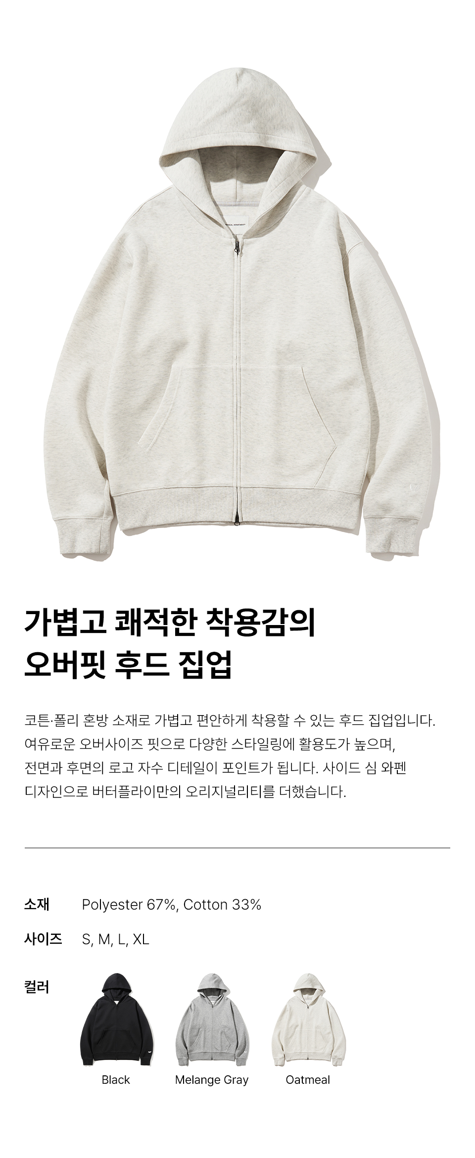 버터플라이 오리지널 자수 로고 2WAY 후드집업 오트밀