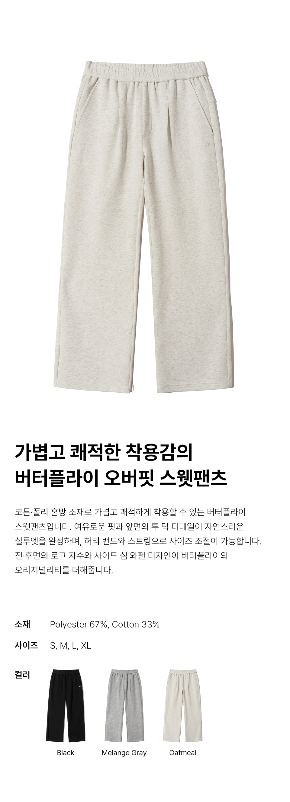 버터플라이 오리지널 로고 투 턱 스웻팬츠 오트밀