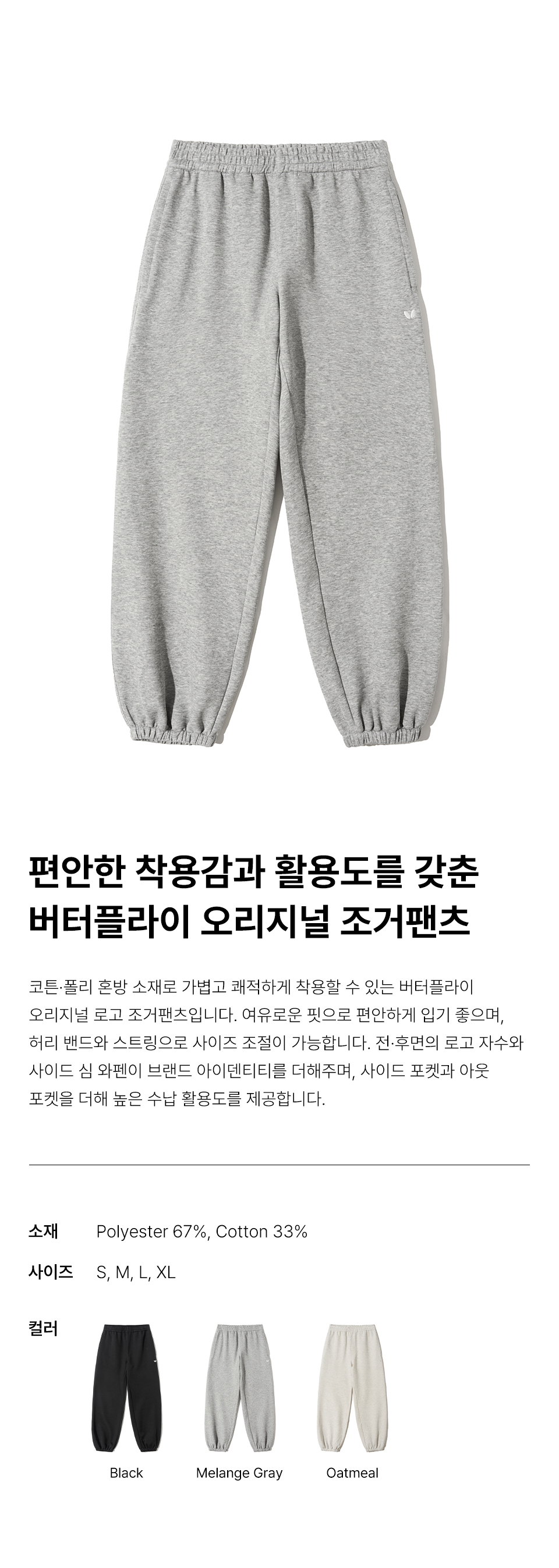 버터플라이 오리지널 로고 조거팬츠 그레이