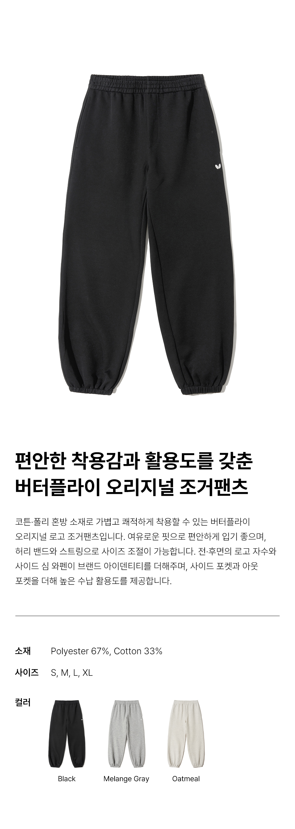 버터플라이 오리지널 로고 조거팬츠 블랙
