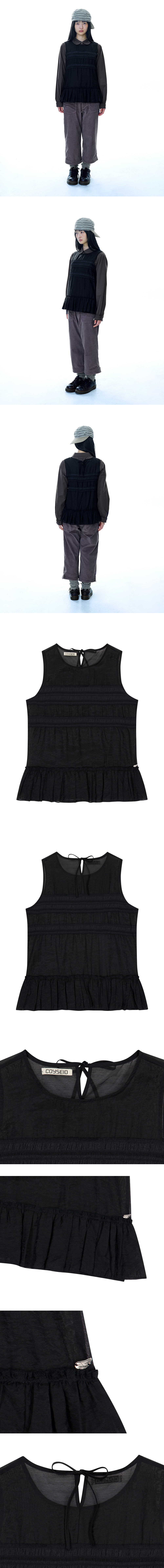 코이세이오 시어 레이어드 슬리브리스 블랙