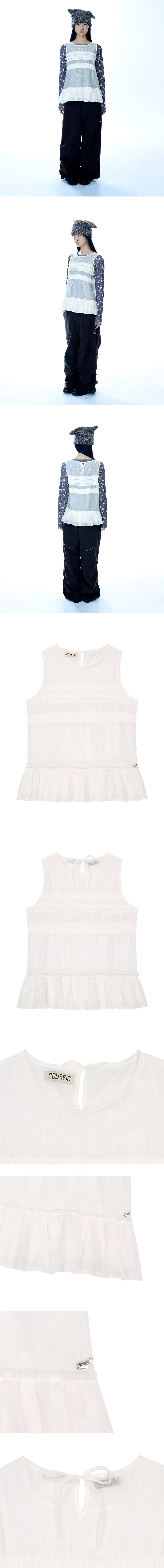 코이세이오 시어 레이어드 슬리브리스 화이트