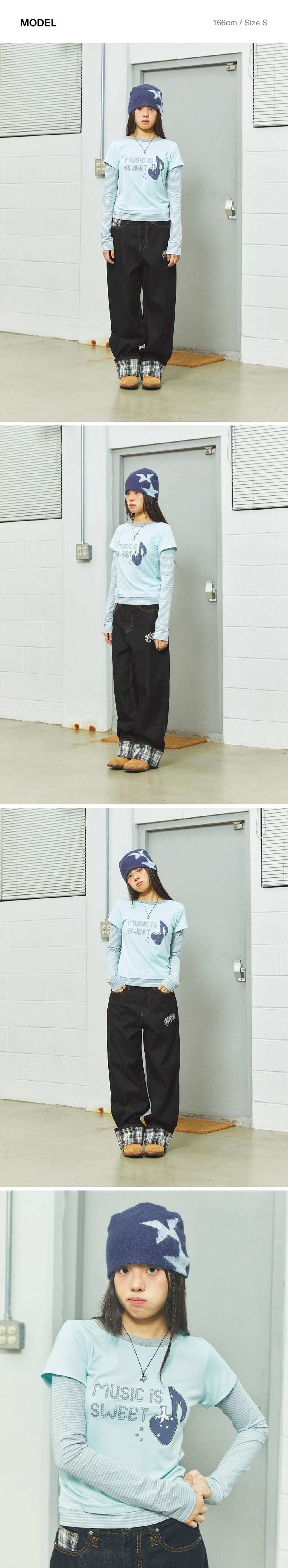 카비시 W 스트로베리 레이어드 롱슬리브 티셔츠 민트