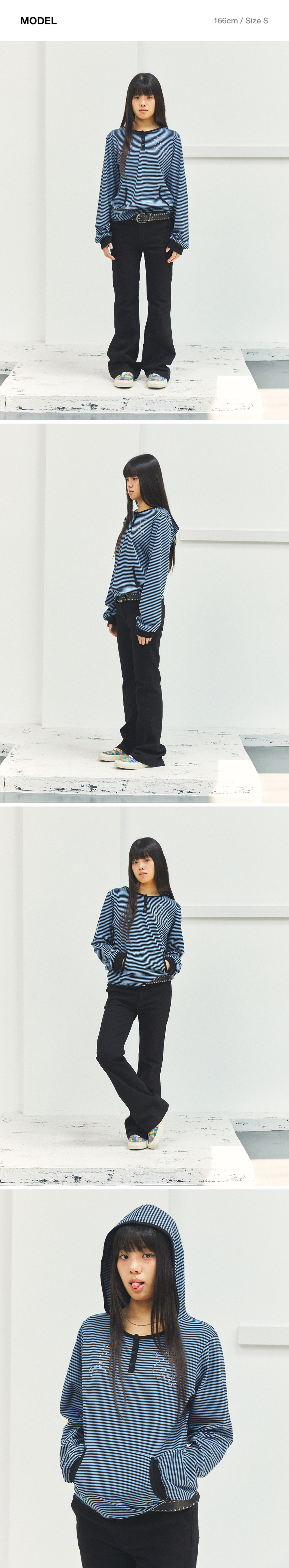 카비시 W 스터드 스트라이프 후디 네이비