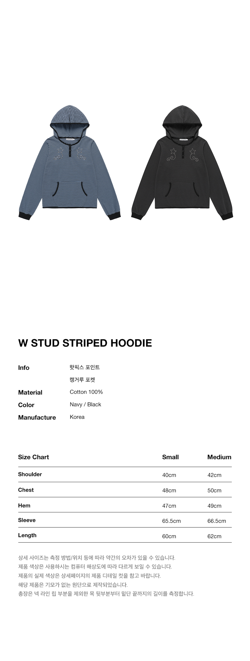 [트리플적립] 카비시 W 스터드 스트라이프 후디 네이비
