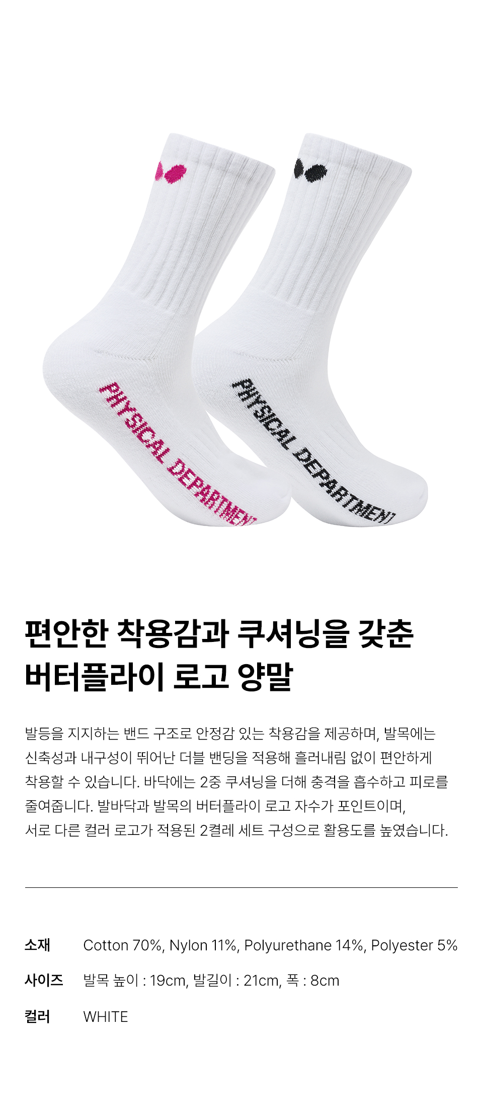버터플라이 로고 양말 화이트 [2PACK]