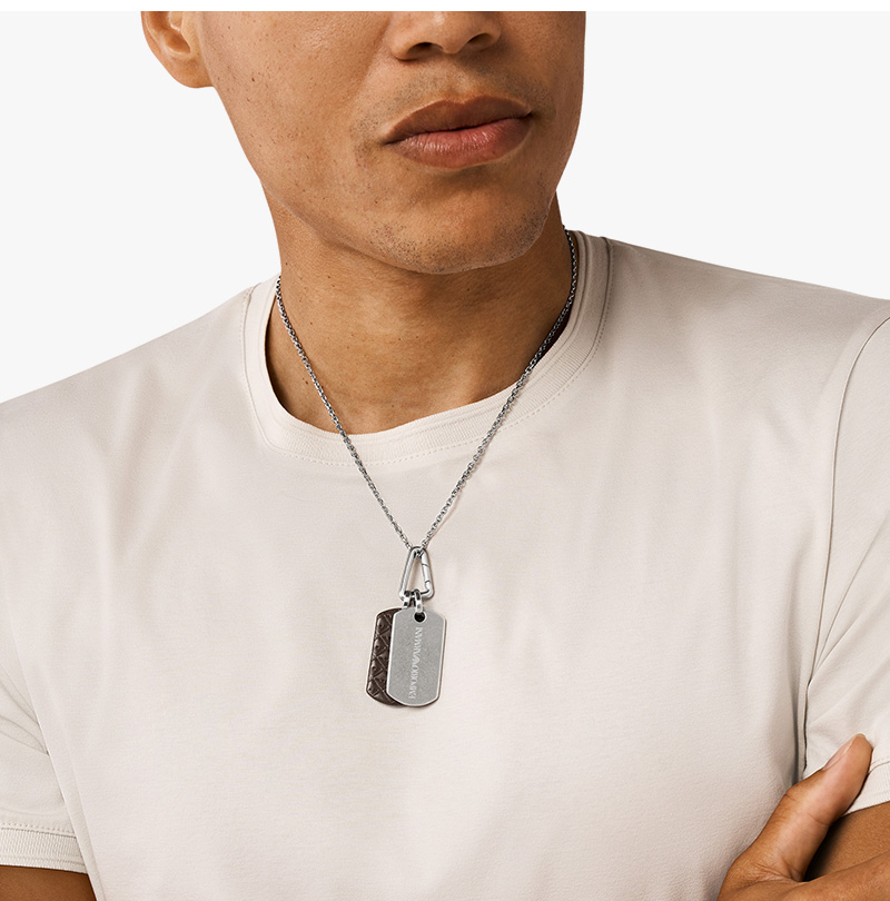 엠포리오 아르마니 스테인리스 스틸 도그 태그 네클리스 실버