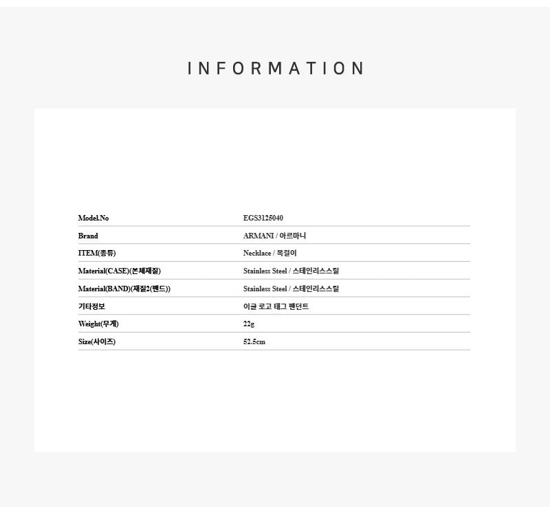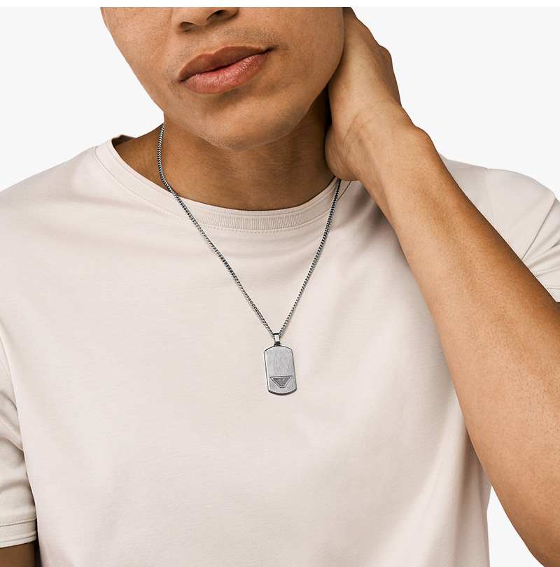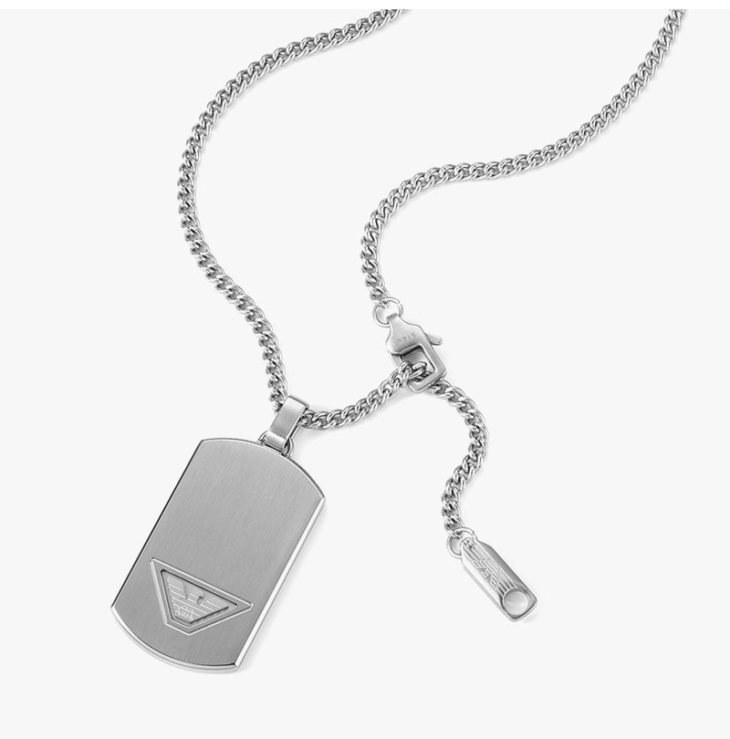 엠포리오 아르마니 스테인리스 스틸 도그 태그 네클리스 실버