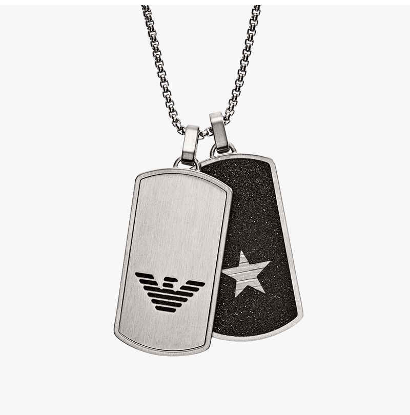 엠포리오 아르마니 스테인리스 스틸 도그 태그 네클리스 실버