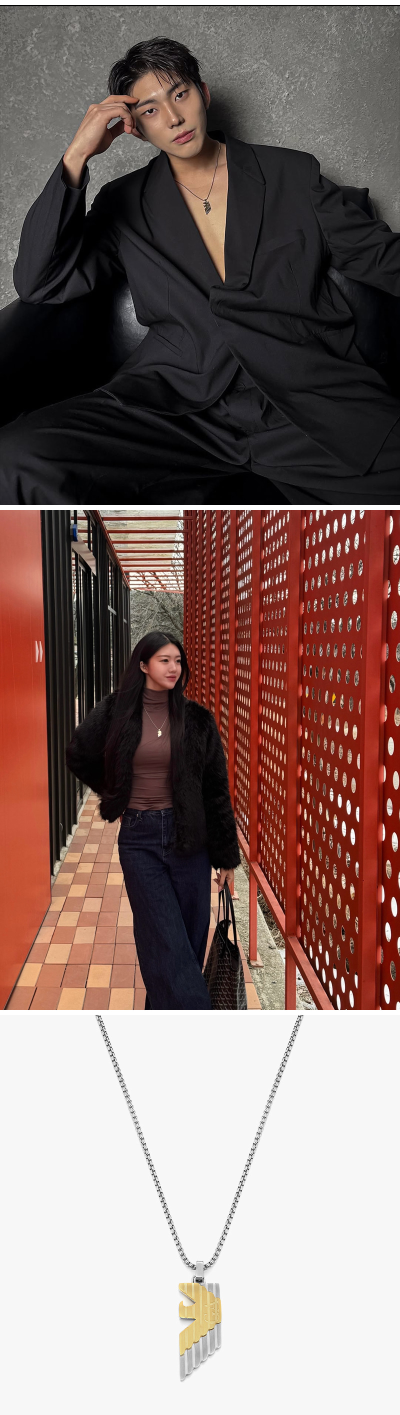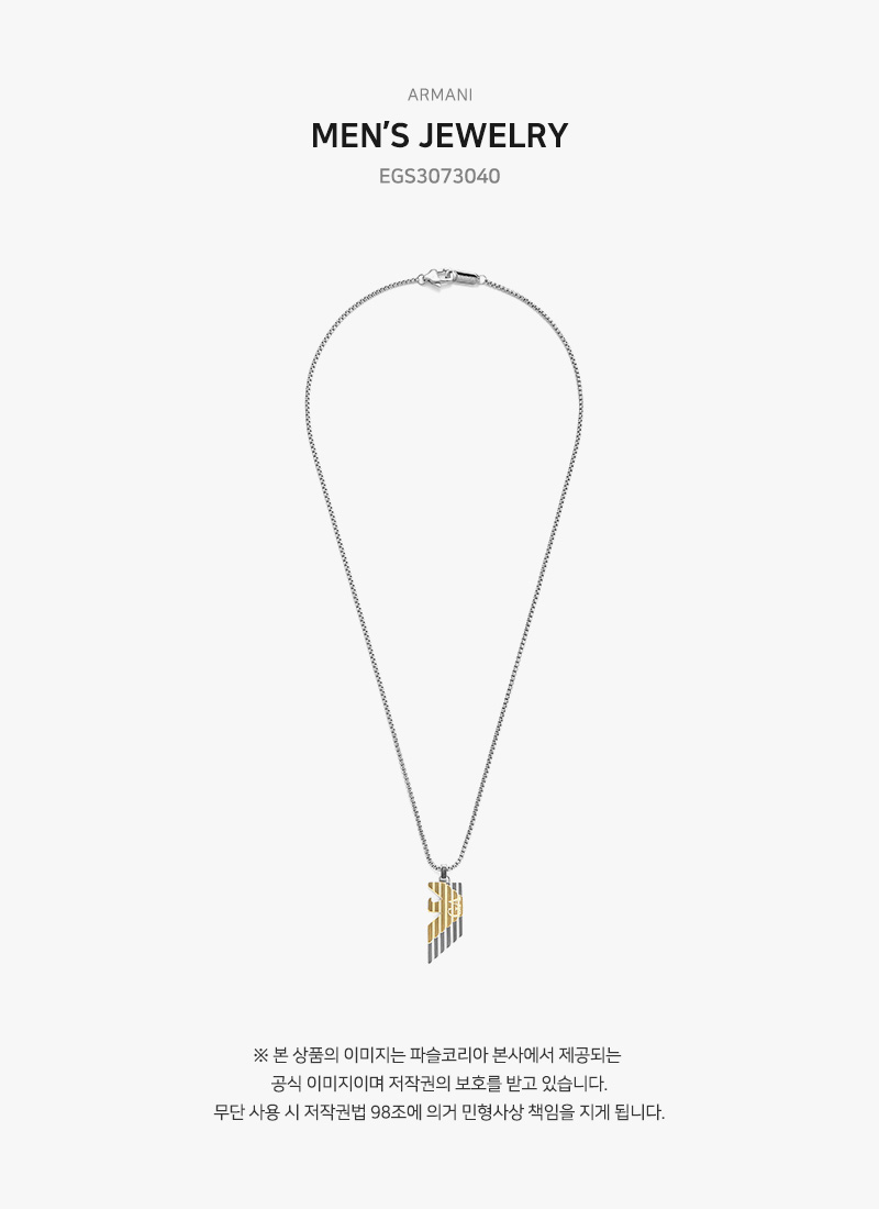 엠포리오 아르마니 투톤 스테인리스 스틸 펜던트 네클리스 실버