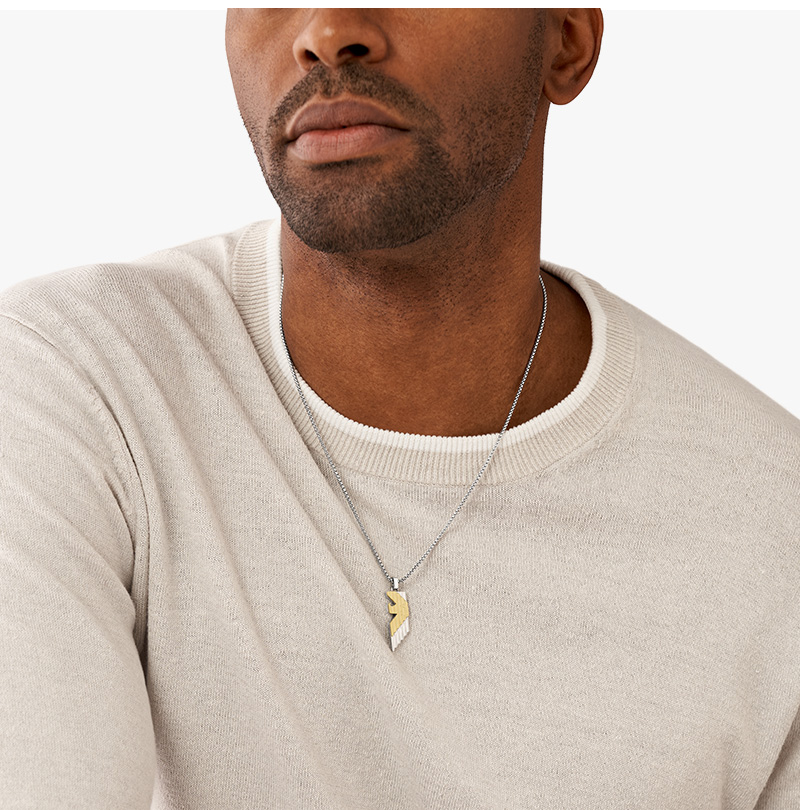 Emporio Armani Two-Tone Stainless Steel Pendant Necklace Silver