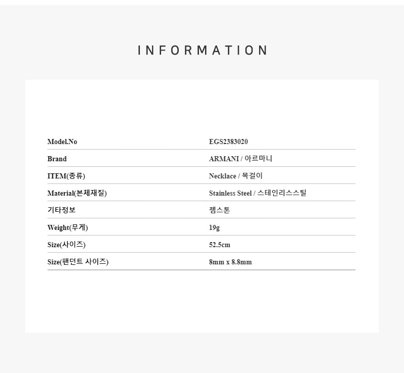엠포리오 아르마니 스테인리스 스틸 네클리스 실버